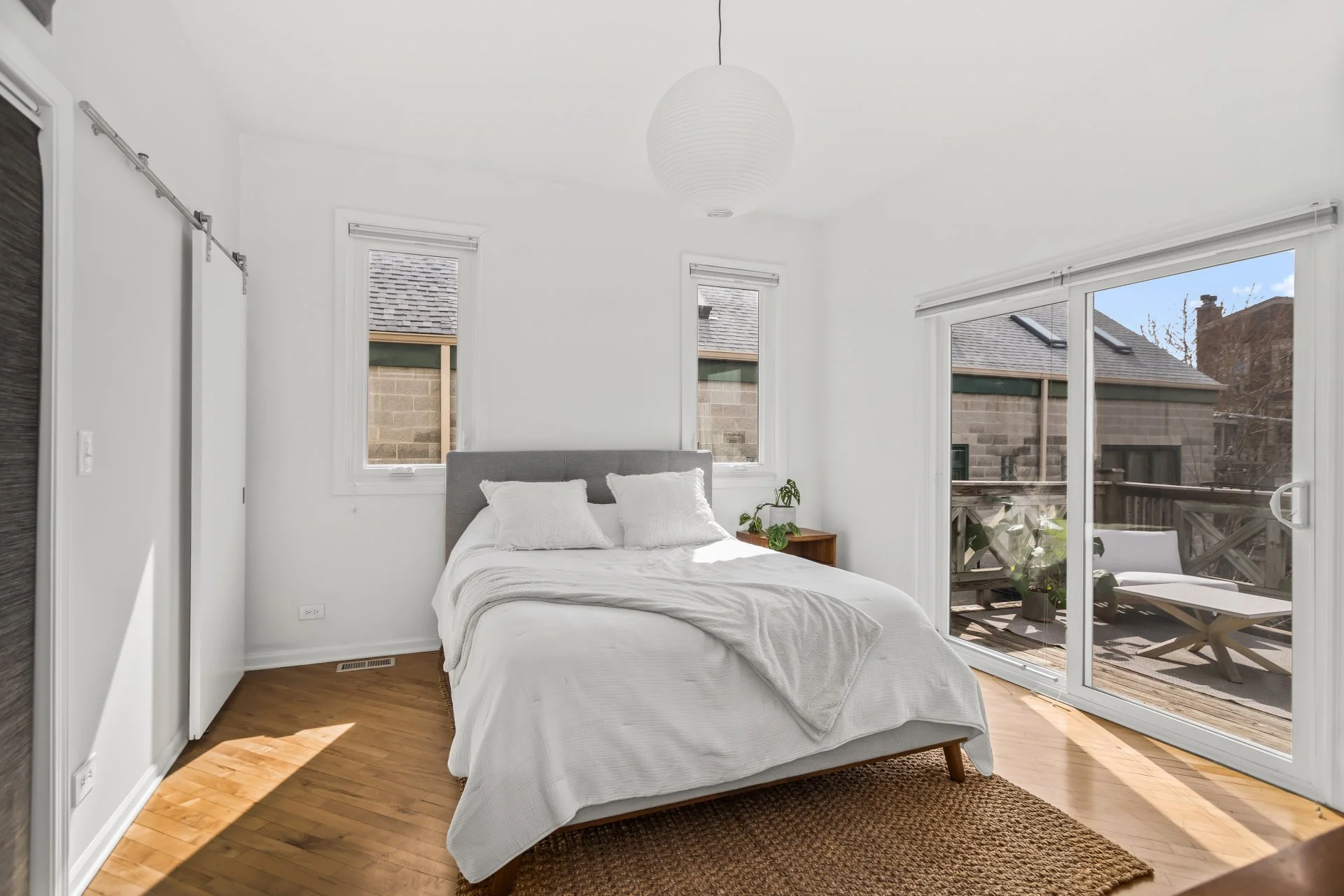 Experience the best of East Village living in this stunning 2-bedroom, 2-bath penthouse suite, complete with a spectacular private rooftop deck! This open and airy unit boasts a private entry staircase with interior exposed brick, leading to an impressive living space with soaring high ceilings, skylights, and abundant natural light. The home features maple hardwood floors, a fireplace, and an open kitchen equipped with granite countertops and stainless-steel appliances. The bedrooms are generously sized, including a king-sized primary suite with access to a private outdoor deck via sliding glass door and an updated primary bathroom featuring a walk-in shower. An interior staircase with floor-to-ceiling windows and interior exposed brick provides exclusive access to a private rooftop retreat with 360 degree skyline views, complete with a lounge area that opens to a massive gathering space covered by a HUGE pergola. Gas and water hookups make this a perfect space for grilling and hosting guests! One garage parking space and oversized extra storage closet are included in the price! Located in prime West Town, this home is just steps away from bustling Chicago Avenue and Division Street with some of the best shopping, entertainment and nightlife in Chicago! Just a short walk to the CTA Blue Line Train, Target and Eckhart Park. Schedule a showing today!
